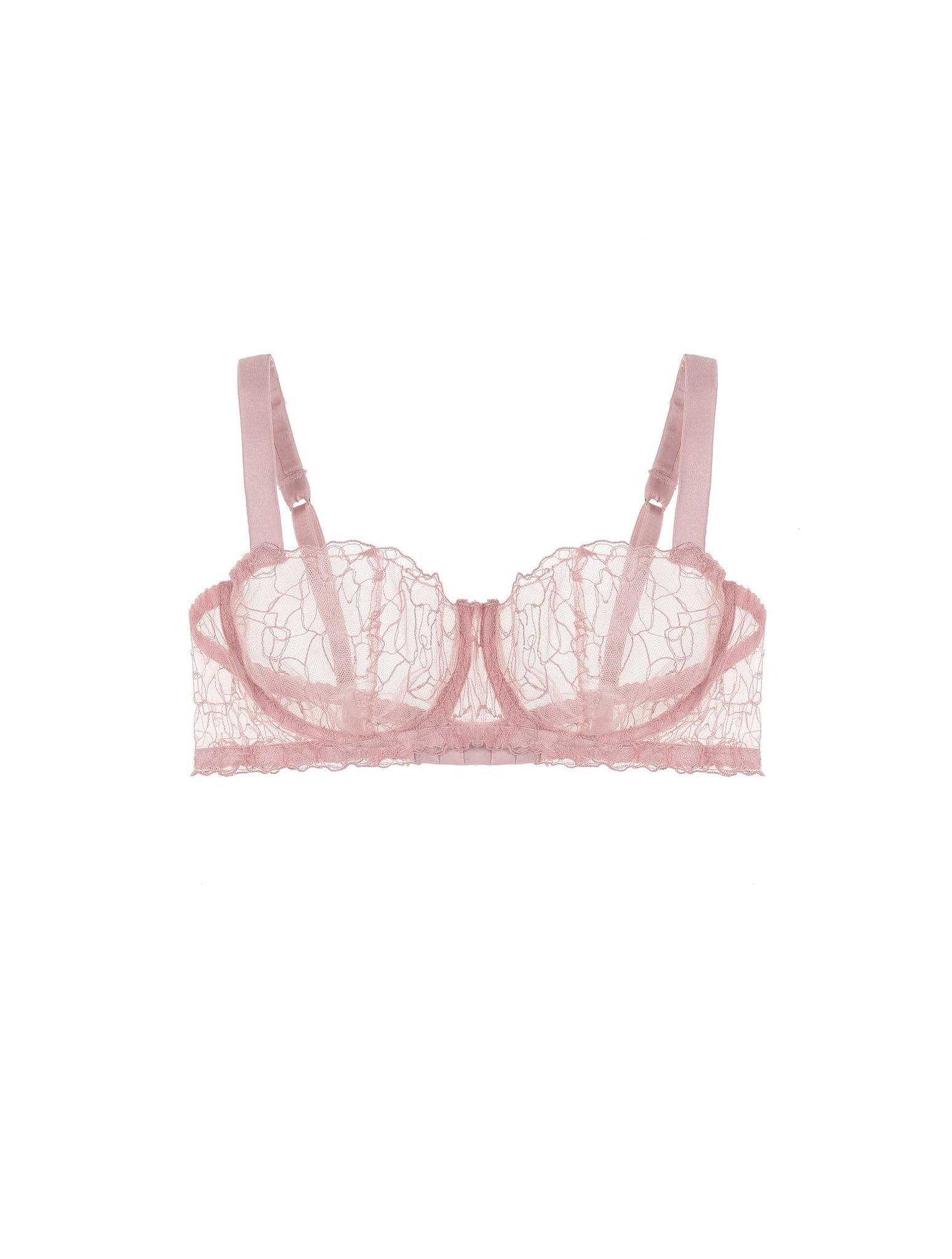 The balcony bra is reimagined in a romantic shade of powder pink. Intricate, abstract embroidery adorns the cups immediately eliciting playfulness and fun. But look a little closer and you’ll see the silhouettes of Fleur’s beloved dog Maple. Silk-encased straps wrap elegantly around the shoulders, while 24-carat gold plated hardware finishes this luxurious Balcony bra. Crafted by our friends in Europe.
