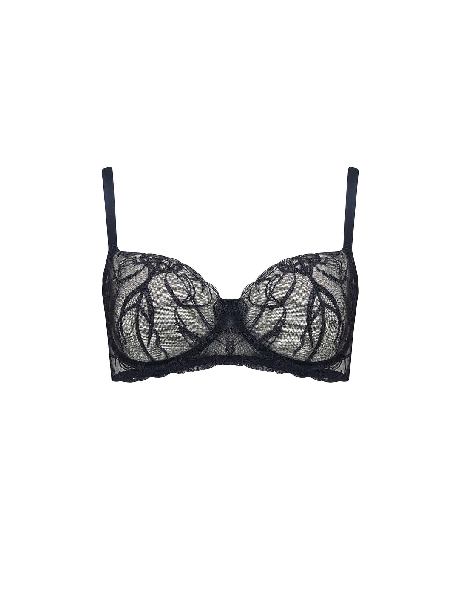 This beautiful navy blue bra has been crafted to ensure a supportive fit for the fuller bust, without compromising on its elegant design. The sheer bra features Fleur’s bespoke design, decorating the body in artistic brush strokes.