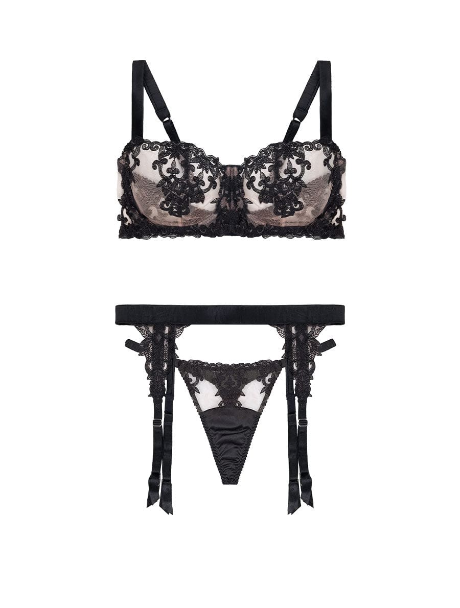 Fleur of England Onyx Balcony Bra, Thong & Suspender