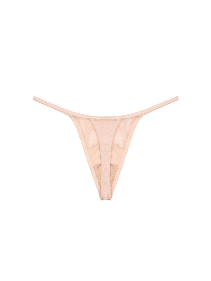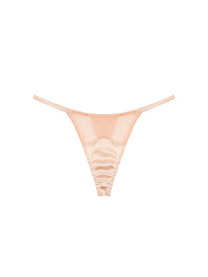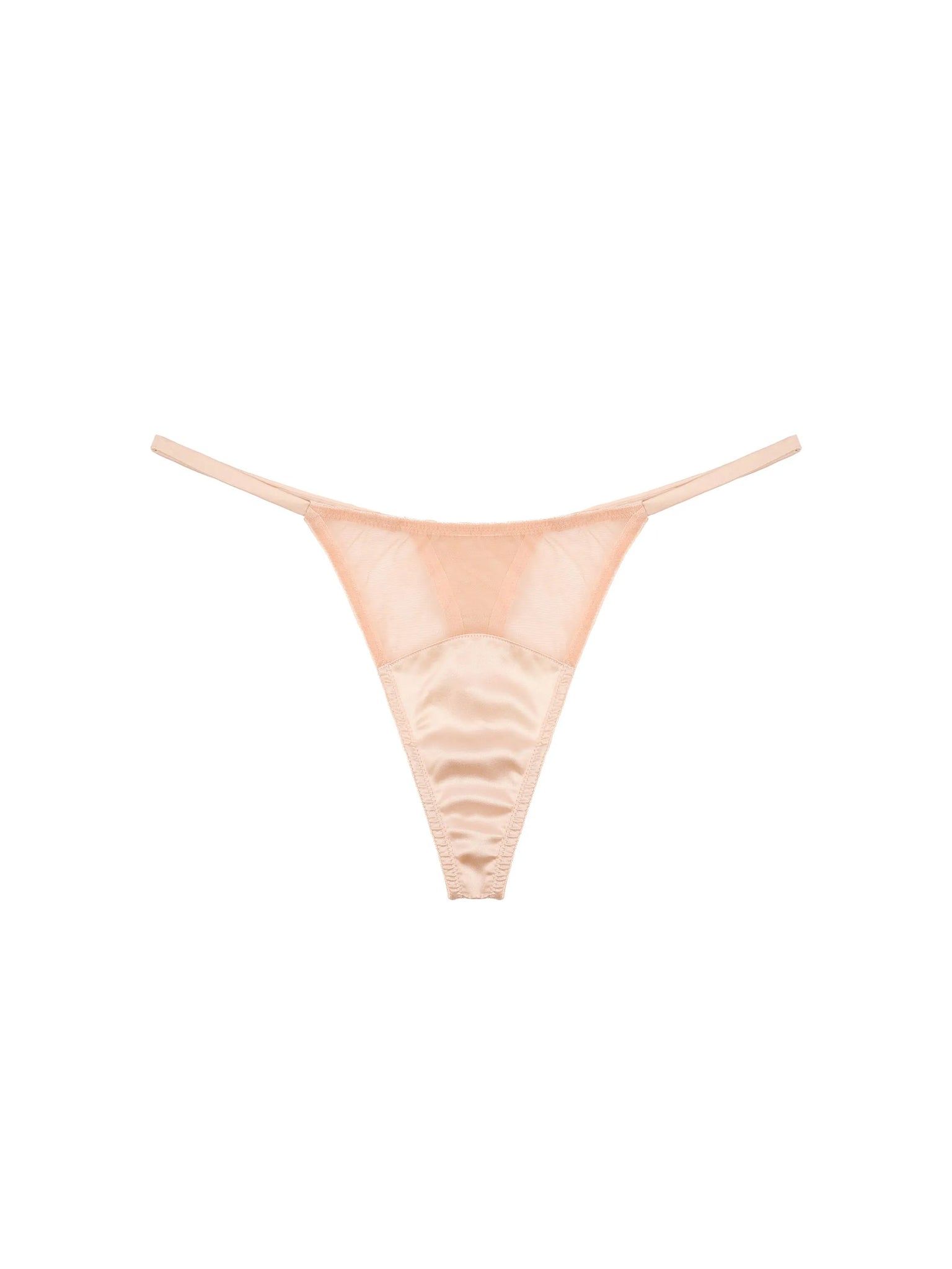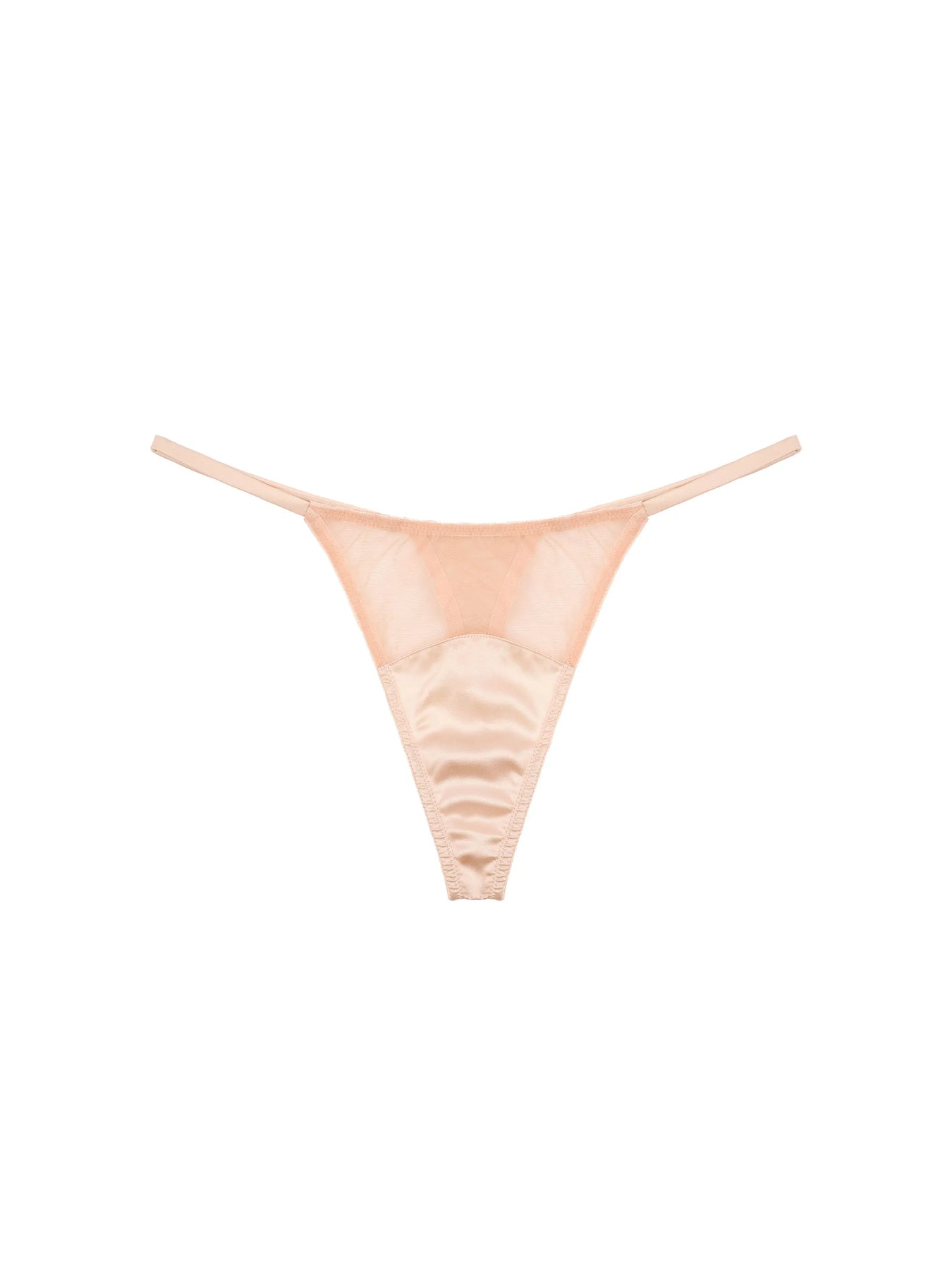 The Fleur du Jour Thong is a minimal design that showcases the beauty of simplicity. Made in Europe, and crafted from soft Italian mesh panels that are paired with Silk encased side straps that reach around the body to be met with silk finishing the back. The gusset is cotton-lined for comfort.