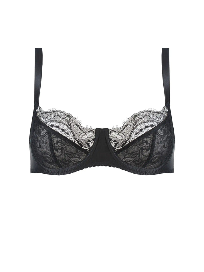 Our luxury balcony bras are underwired and often feature 3-piece cups that lift from the base for a naturally rounded, supported shape, with tulle lining for extra support—perfect for designer lingerie that flatters every bust.