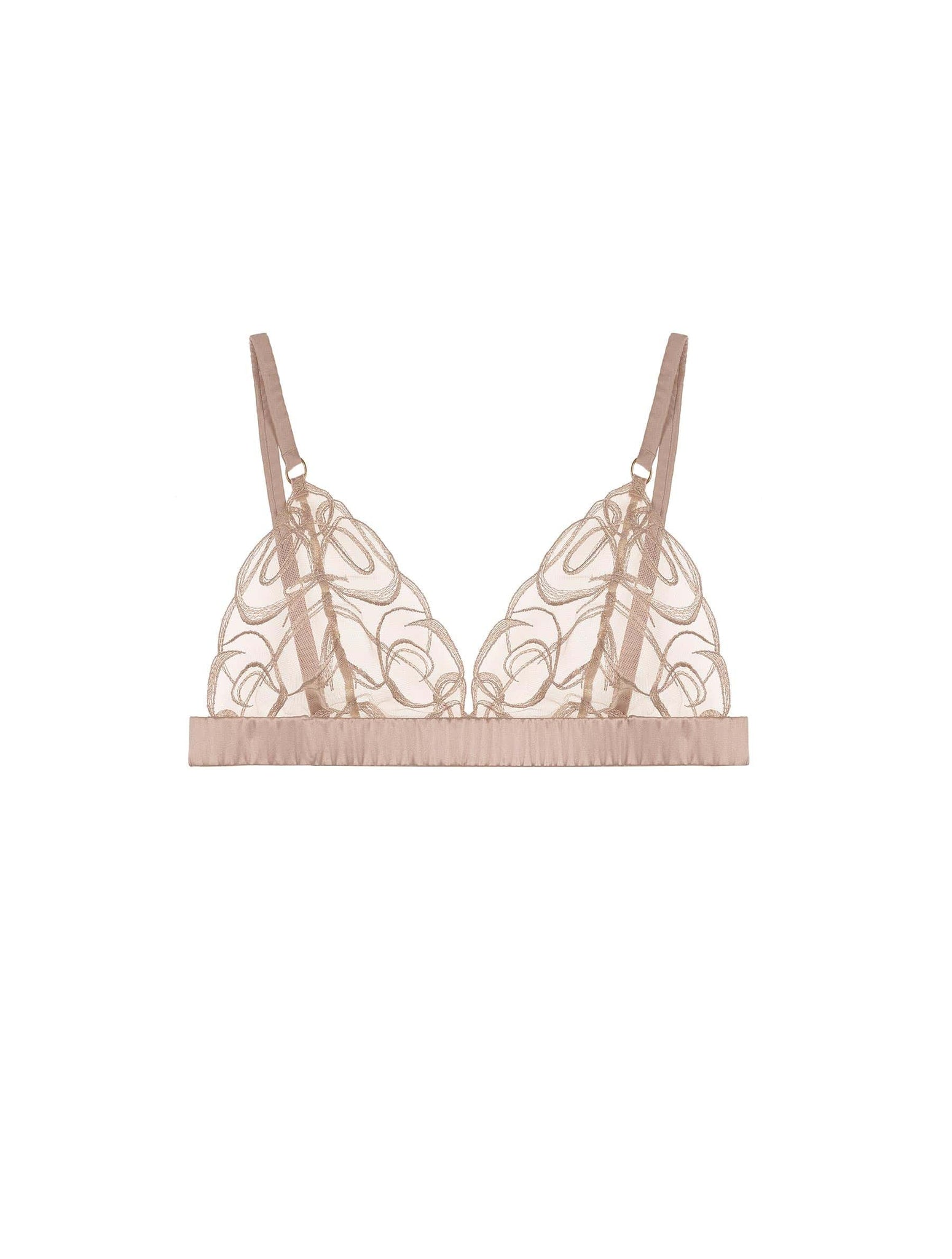 The Mia Boudoir Bra features a classic Fleur of England soft cup design. A silk-encased waistband gently hugs the waist offering support, while silk-encased straps grip the shoulders. Crafted in sheer Italian tulle and silk, in a dreamy golden colour inspired by Balmy evenings in the Mediterranean.