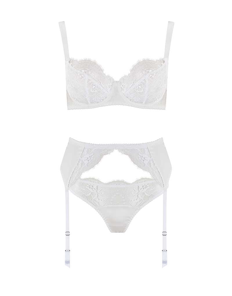 Signature White Balcony Bra, Thong & Suspender