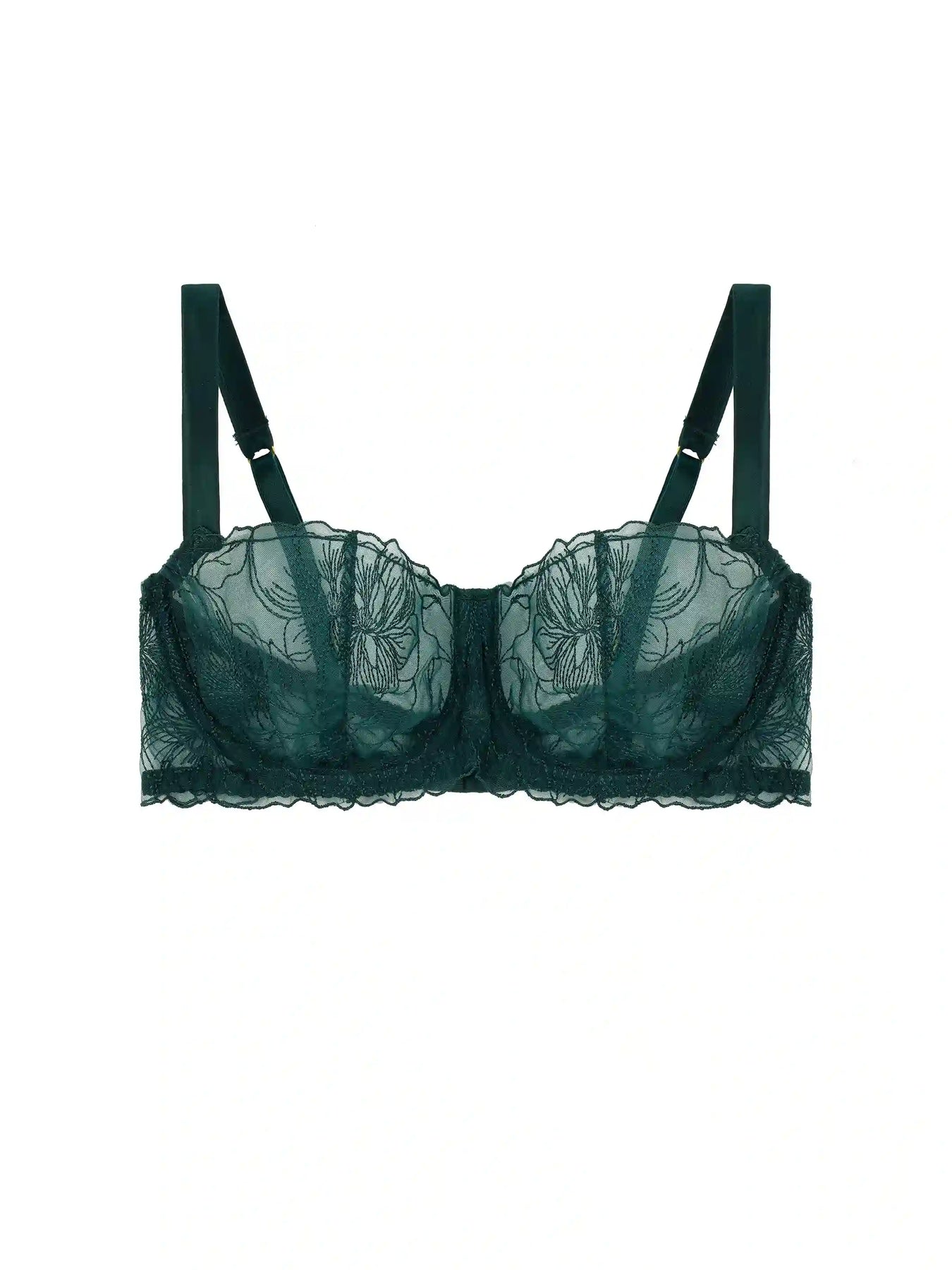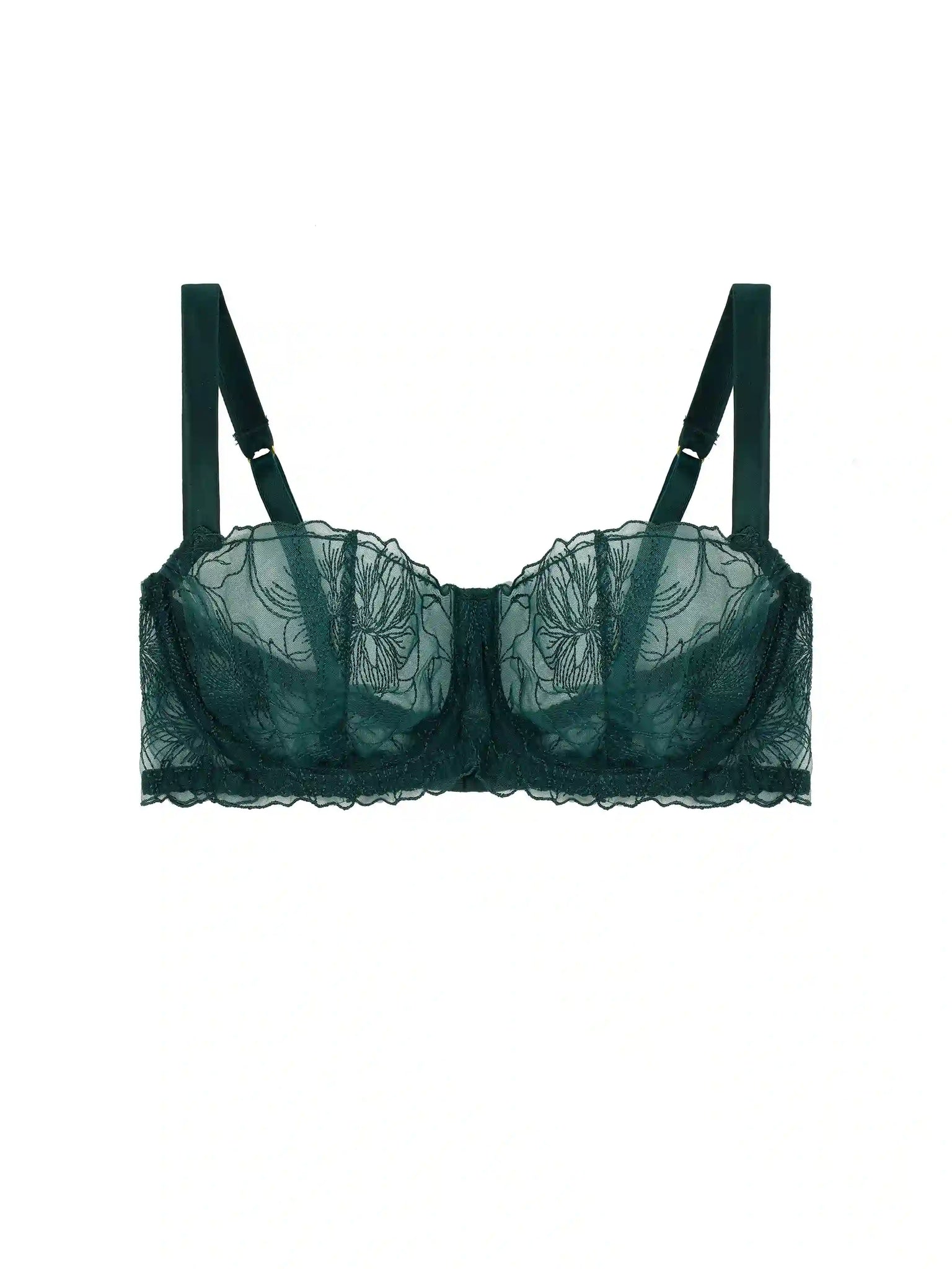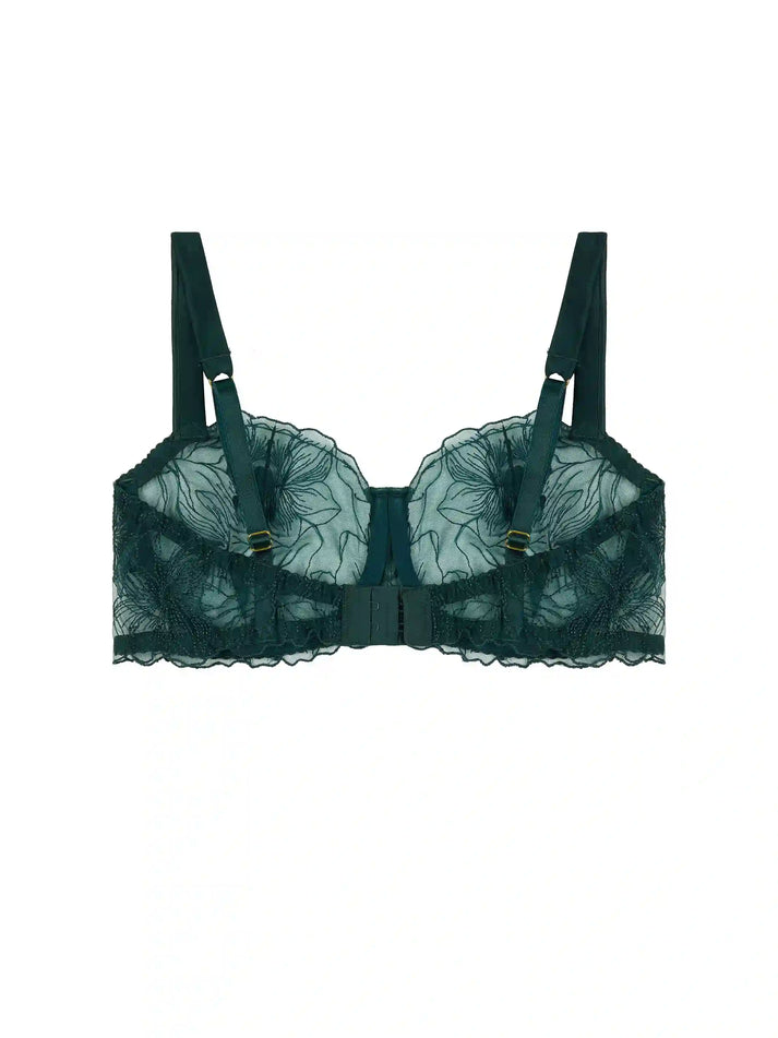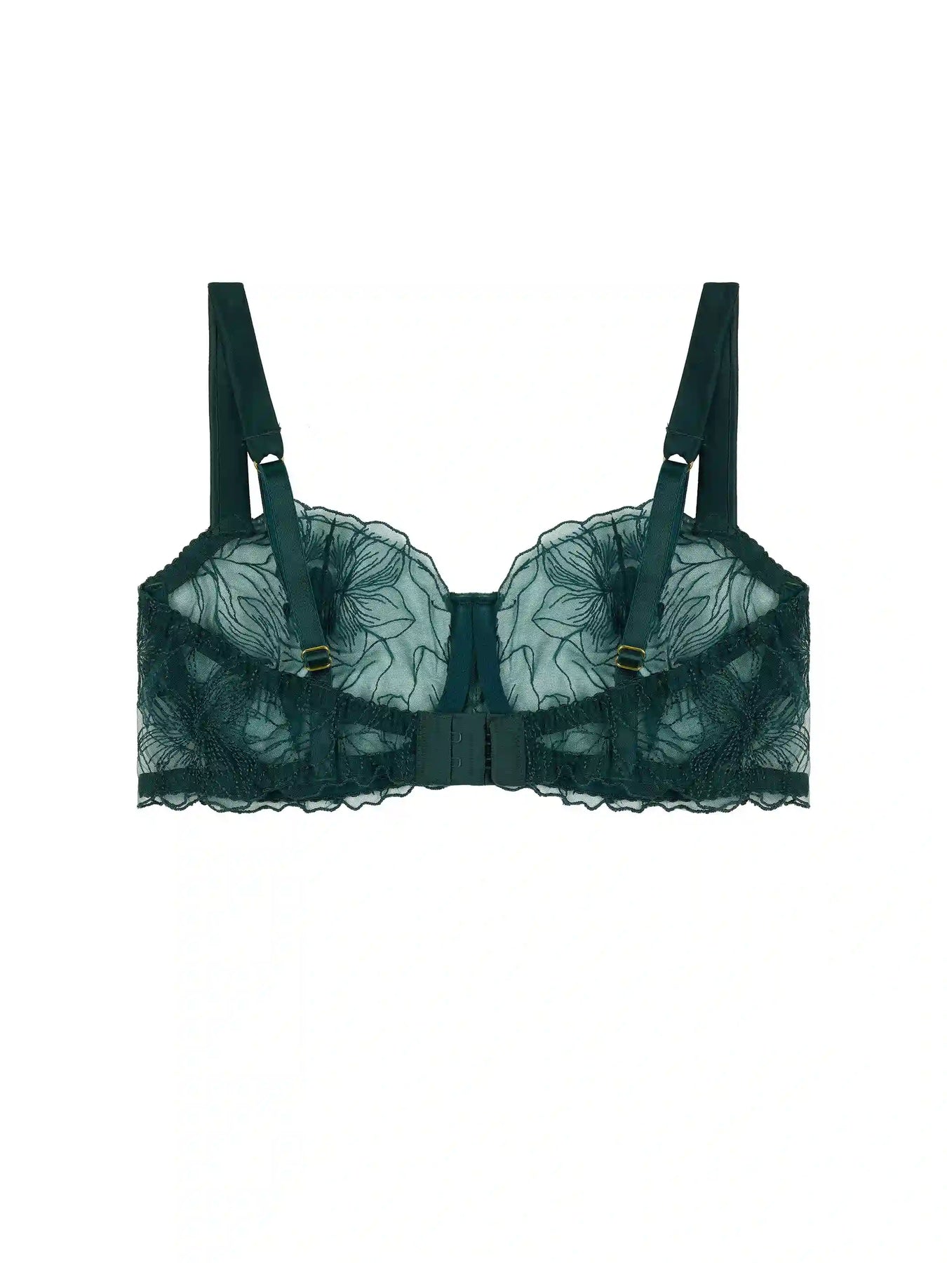 This season our classic balcony bra style has been crafted using exquisite forest green soft voile, adorned with Fleur’s Hand-drawn embroidery design of the magnolia flower. The Eva Balcony Bra features a double layer cup for a sheer supportive fit, adjustable silk encased straps with 24-carat gold plated hardware for that extra touch of elegant luxury.