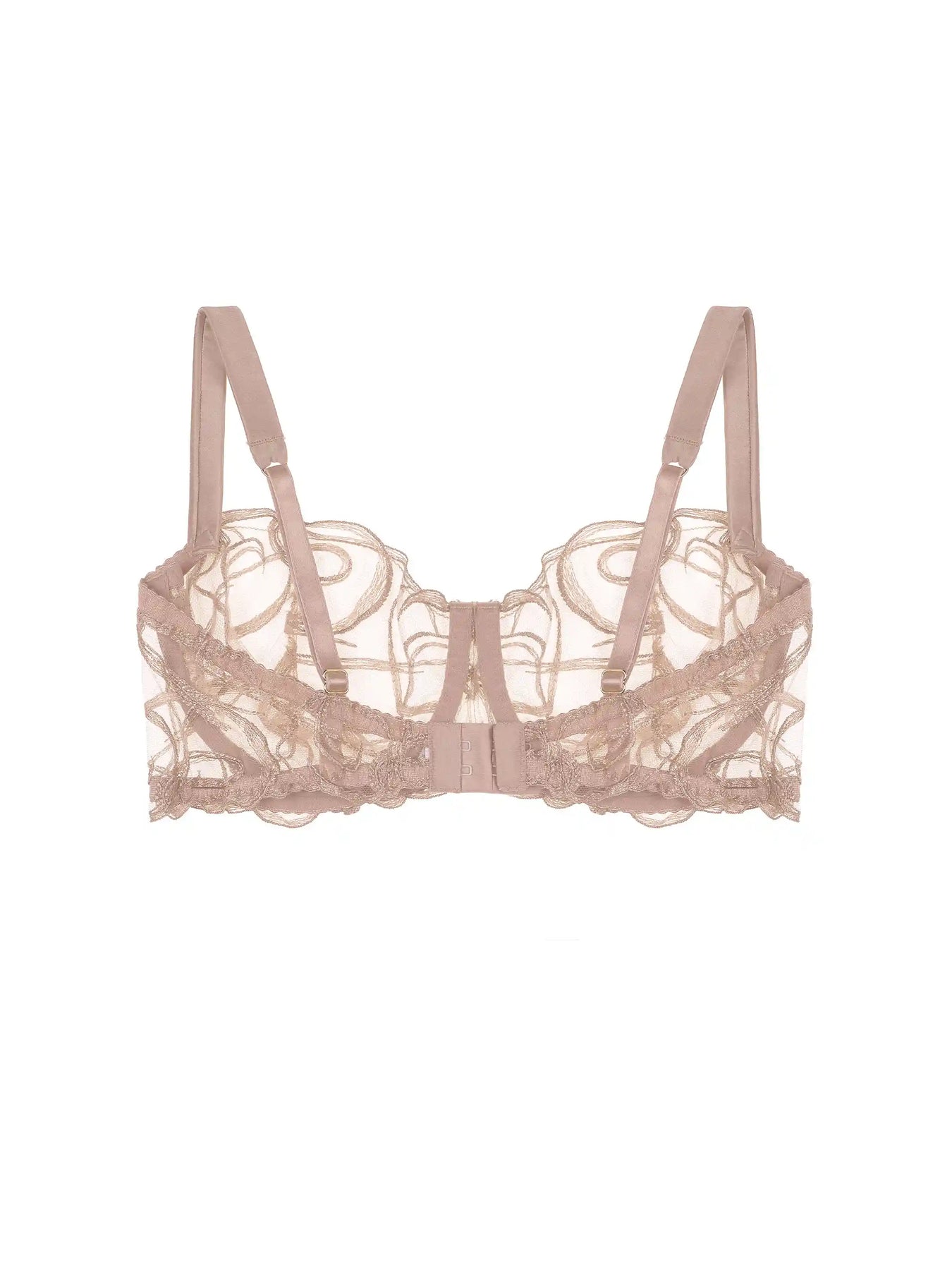 The Mia Balcony Bra features a classic Fleur of England design. A silk-encased straps grip the shoulders whilst Fleur's hand-drawn embroidery design adorns the tulle-lined cups. Crafted in sheer Italian tulle and silk, in a dreamy golden colour inspired by Balmy evenings in the Mediterranean.