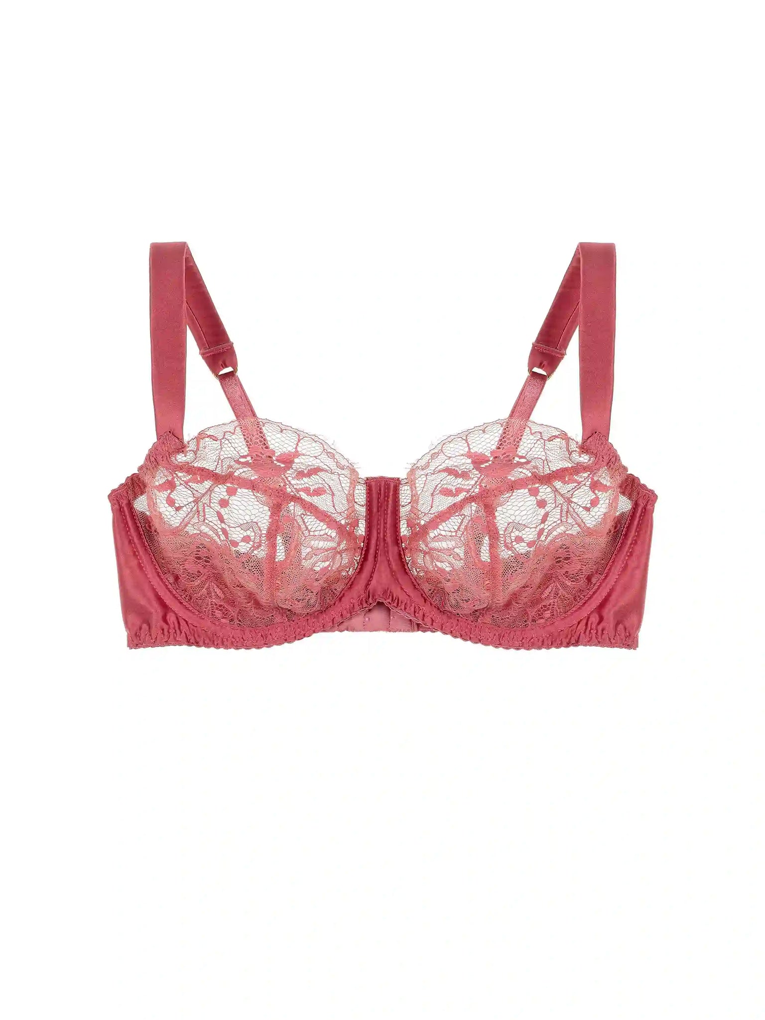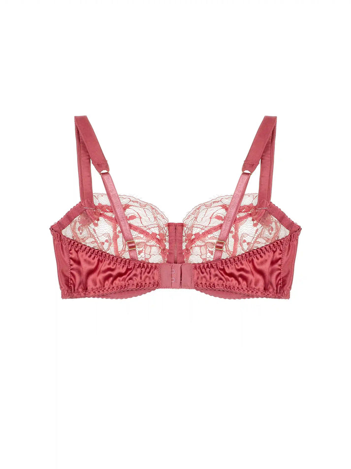 A Fleur of England classic design, the Sienna Balcony Bra is crafted in exquisite French eyelash lace that adorns the bust, whilst soft silk In a beautiful shade of burnt apricot sweeps the waistband and luxuriously encases the silk straps. Luxuriously finished with 24-carat gold plated hardware. Crafted by our friends in Europe.