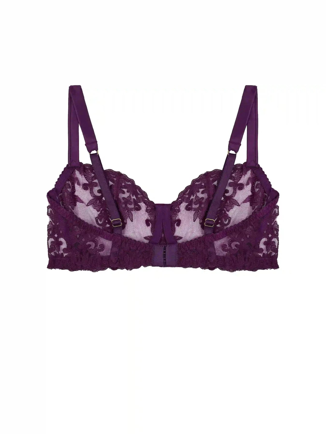 Bestselling underwired Balcony bra with bespoke embroidery hand-designed by founder Fleur. In a captivating shade of deep purple, this timeless everyday bra provides excellent support, shape and uplift for a range of sizes.