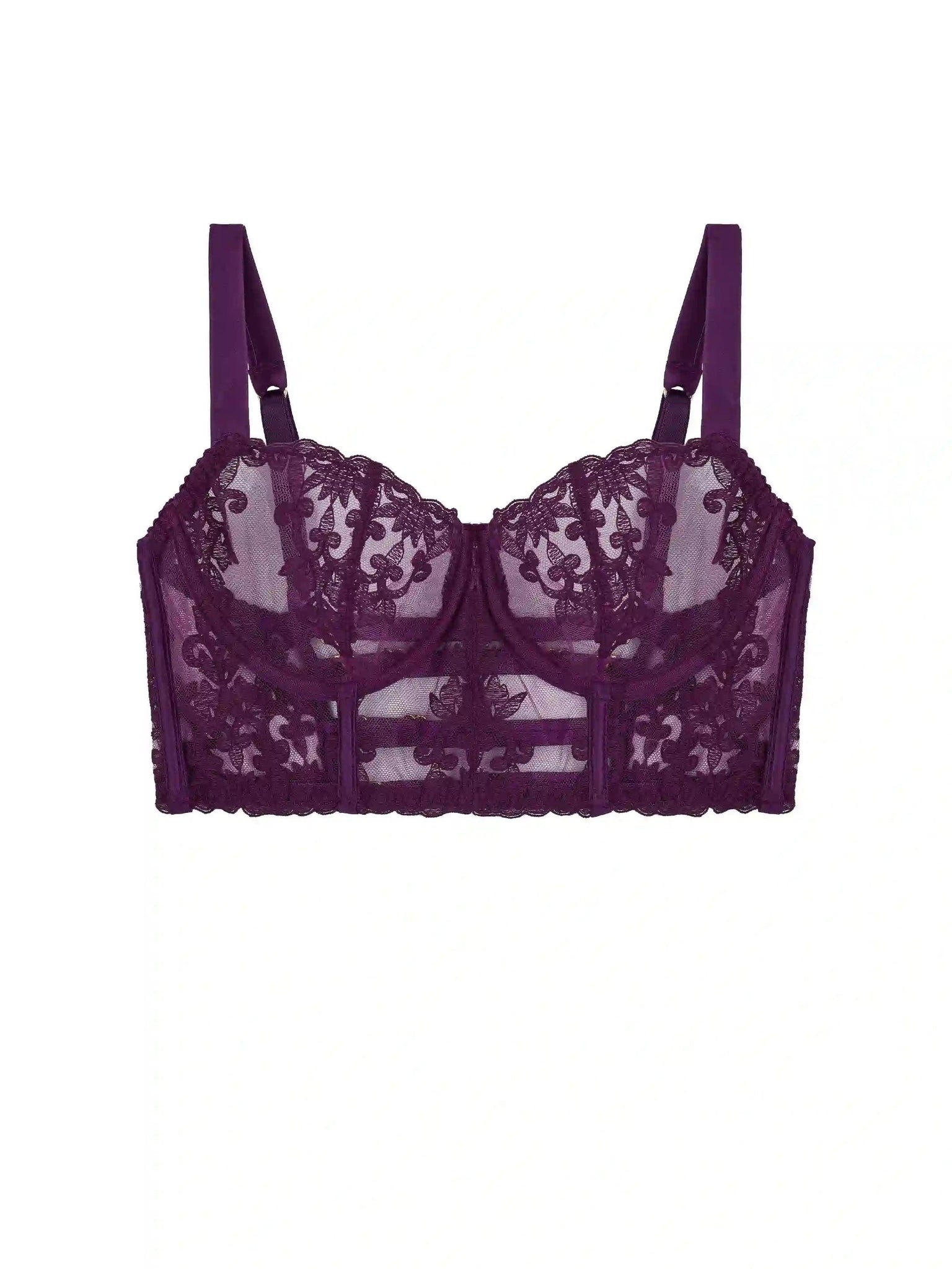 Offering a look that is both ultra-feminine and boldly captivating, the Cecilia Longline Balcony Bra showcases European craftsmanship at it's finest. With deep purple bespoke embroidery and a bold strap-back design, this underwired bra is designed for ultimate confidence.