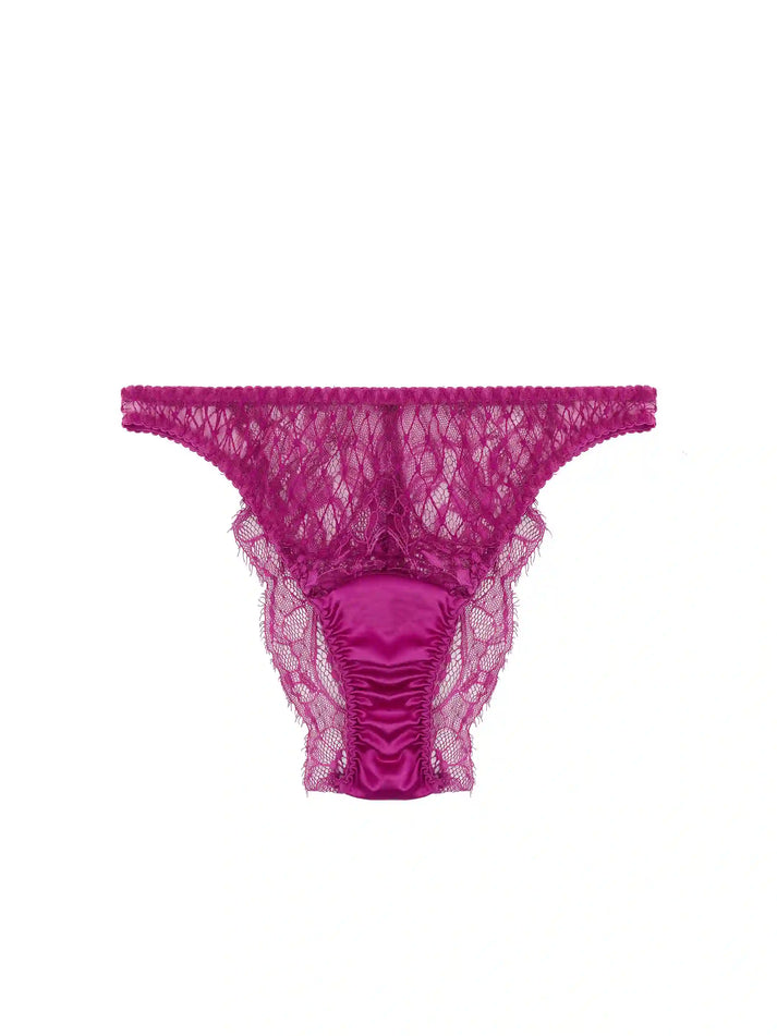 A refined lingerie staple and our bestselling brief silhouette, the Paloma Brazilian Brief is crafted in our exclusive French eyelash lace and is blended beautifully with our bespoke fishnet inspired embroidery with hidden heart details, your go-to piece for Valentine's Day, romantic escapes, or simply celebrating yourself.